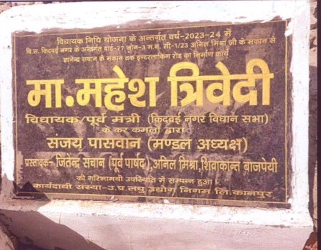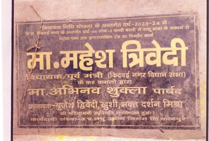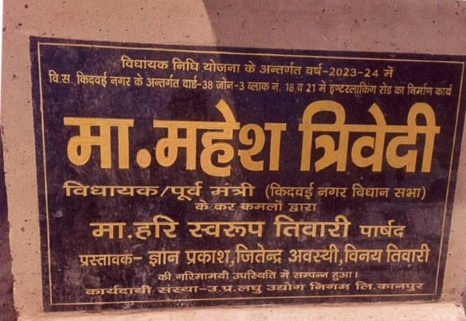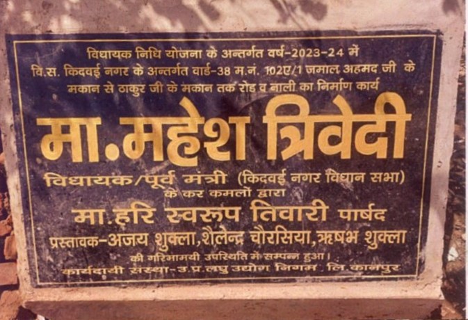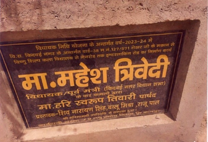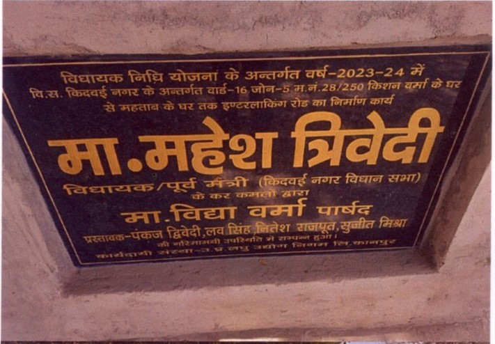 कार्य का नाम – विधानसभा कल्यानपुर के अन्तर्गत वार्ड-19 बारासिरोही में राधे श्याम पब्लिकेशन के सामने श्री दीपू के मकान तक एवं श्याम सुन्दर के मकान से श्री दीपू के मकान तक इण्टरलाकिंग रोड का निर्माण कार्य।