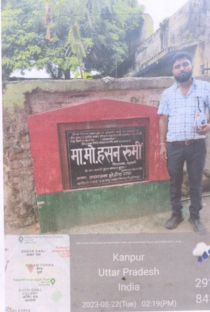 | 17 | कैंट विधानसभा के अन्तर्गत चौराहा दरगाह शरीफ जाजमऊ में फरीद जू0हा0 स्कूल से शाद ट्रेडर्स जाजमऊ तक सी0सी0 रोड का निर्माण कार्य। लम्बाई 60मी0 | 04-09-2024 | 7.69 | उ0प्र0 लघु उद्योग निगम। | - |