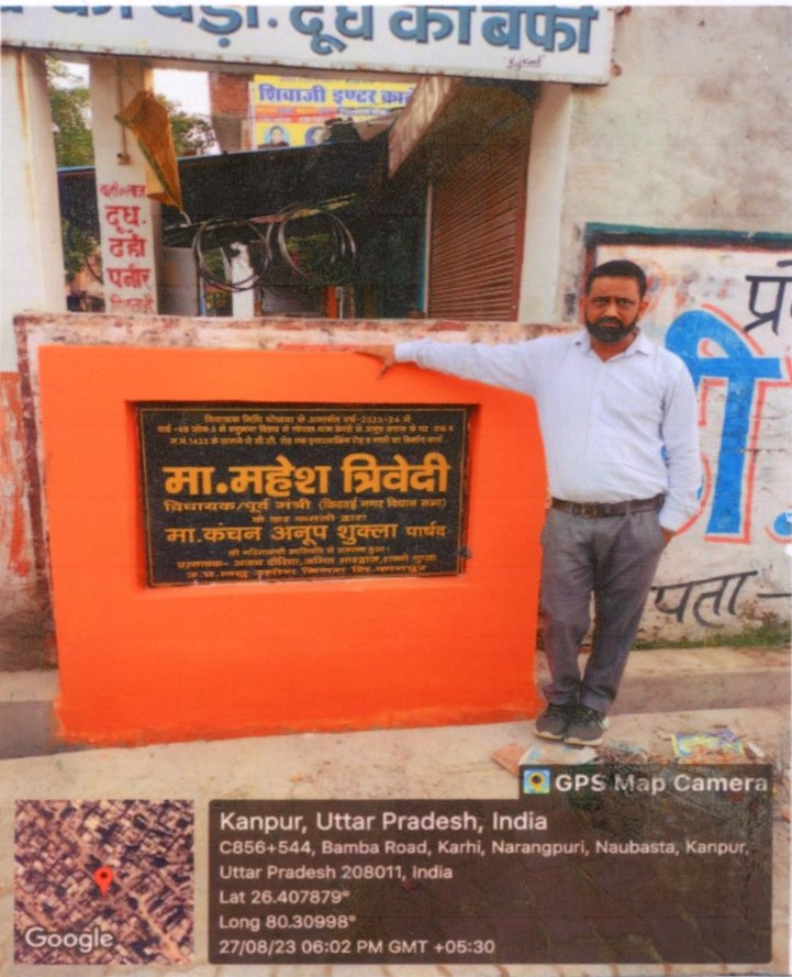 कार्य का नाम – आर्यनगर विधानसभा के अन्तर्गत वार्ड- 79 मे 22/26 से 22/36 व 23/70 से 23/68 तक सी0सी0 रोड का निर्माण कार्य। लम्बाई 50मी0