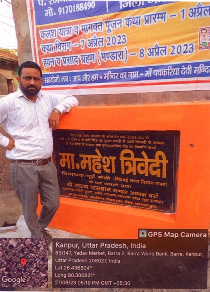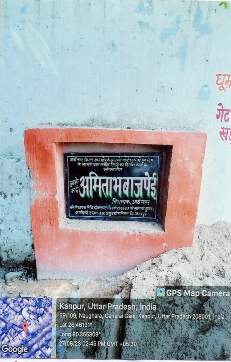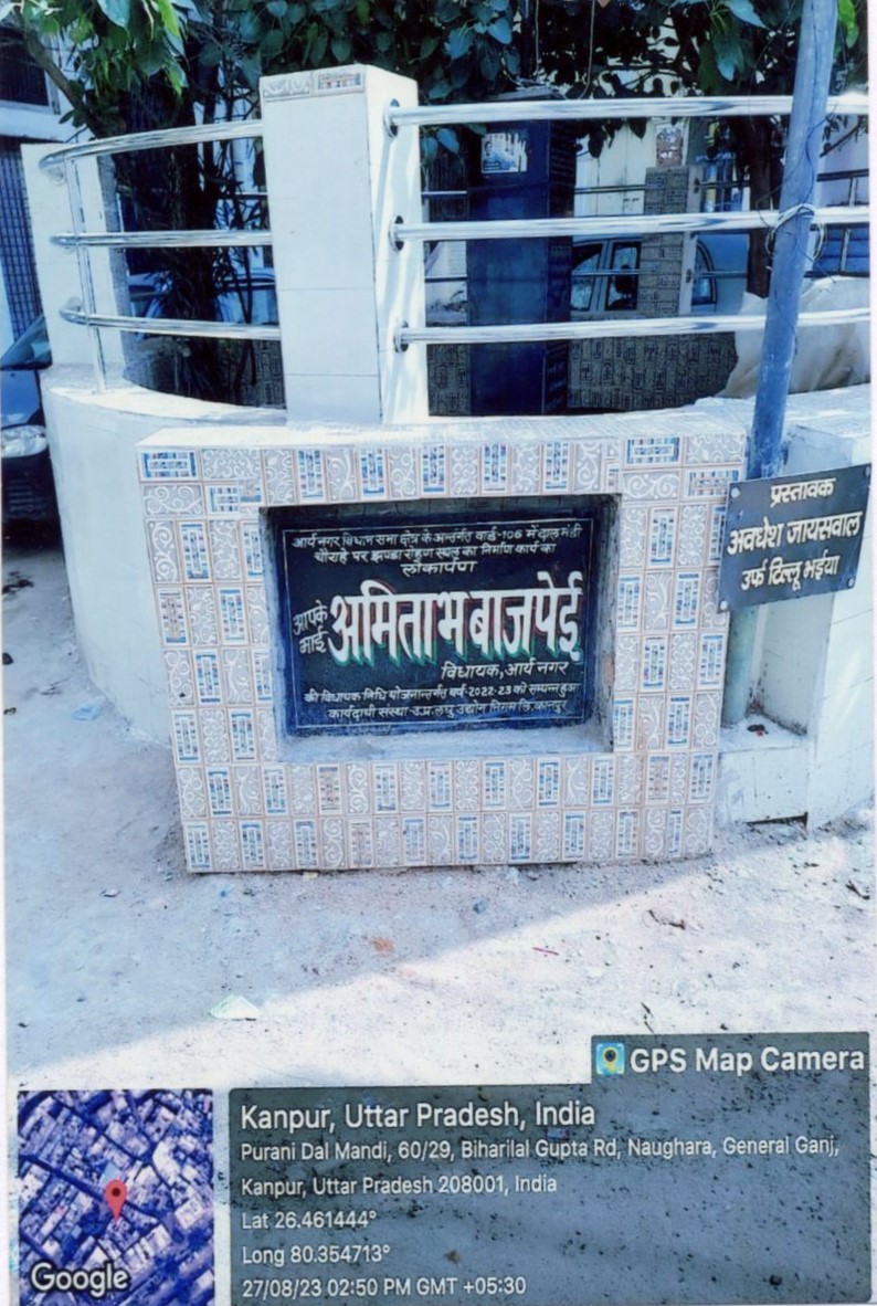 कार्य का नाम – आर्यनगर विधानसभा के अन्तर्गत वार्ड-42 में 14/75 खलवा हाता परेड में सी0सी0 रोड का निर्माण कार्य। लम्बाई 115.80मी0