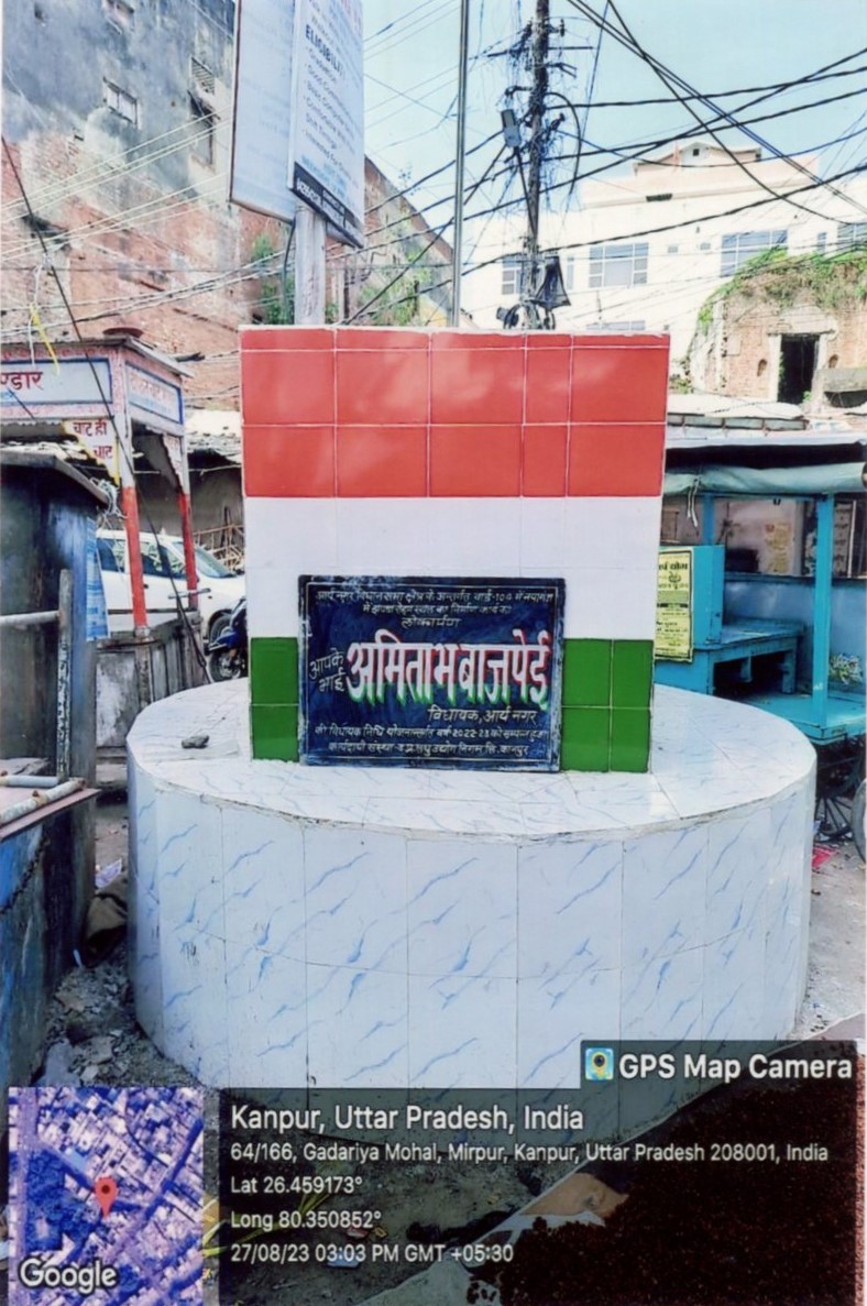 कार्य का नाम – आर्यनगर विधानसभा के अन्तर्गत वार्ड- 106 में दाल मण्डी चौराहे पर झण्डा रोहण स्थल का निर्माण कार्य।