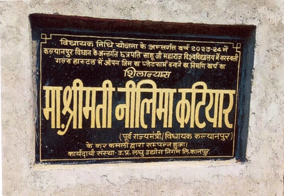 | कार्य का नाम -कल्यानपुर विधानसभा के अन्तर्गत छत्रपति साहू जी महाराज विश्वविद्यालय में सरस्वती गर्ल्स हास्टल में ओपन जिम का प्लेटफार्म बनाने का निर्माण कार्य। लम्बाई 22मी00 लम्बाई 22 मी0 ।