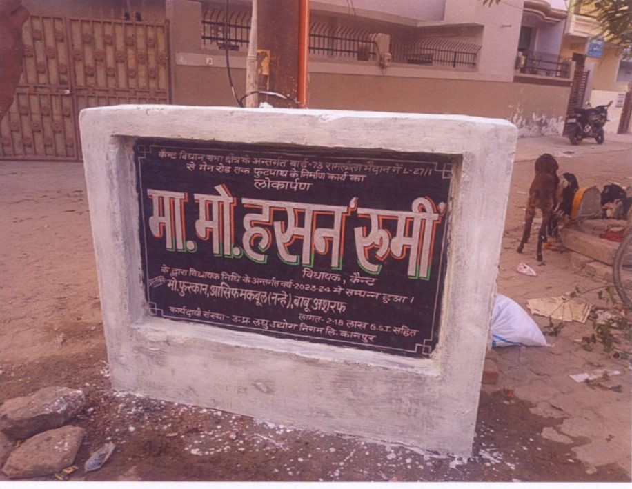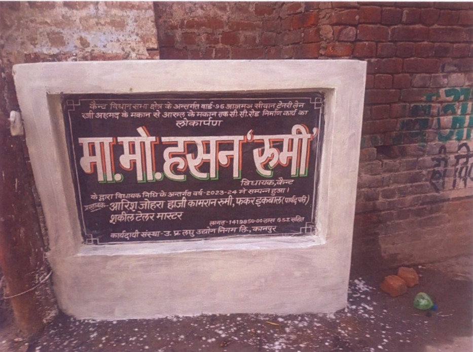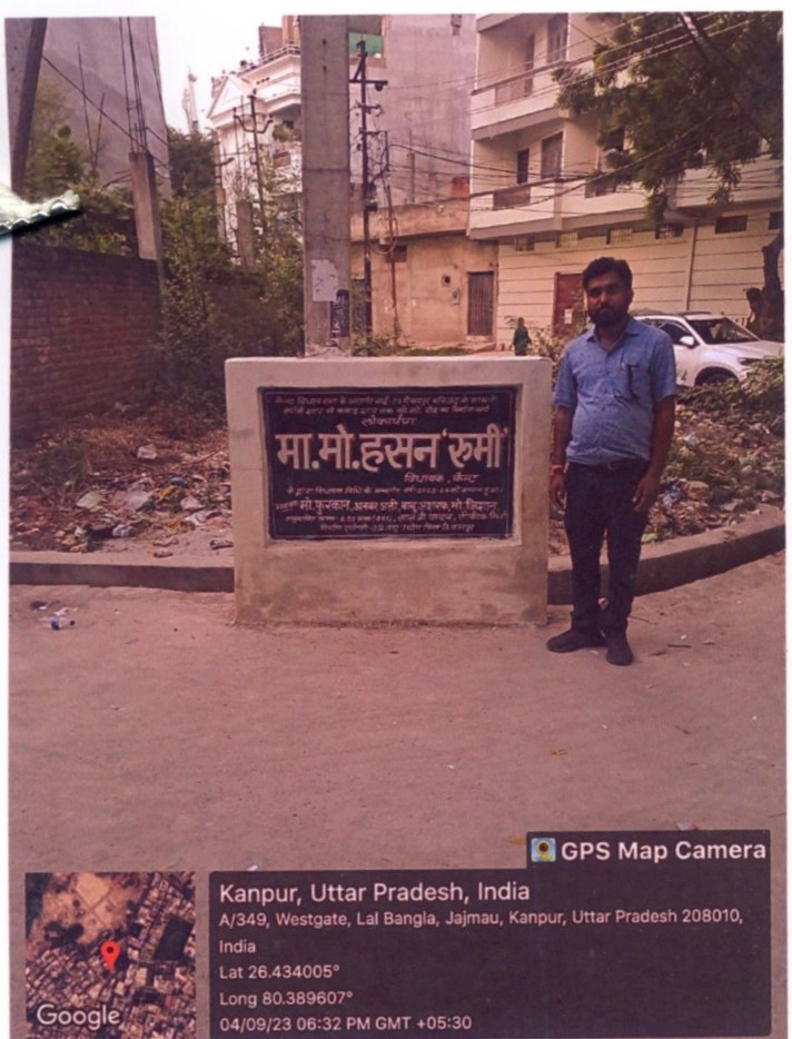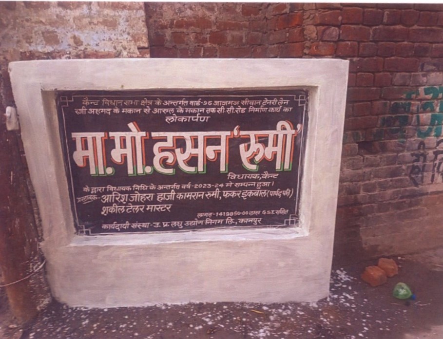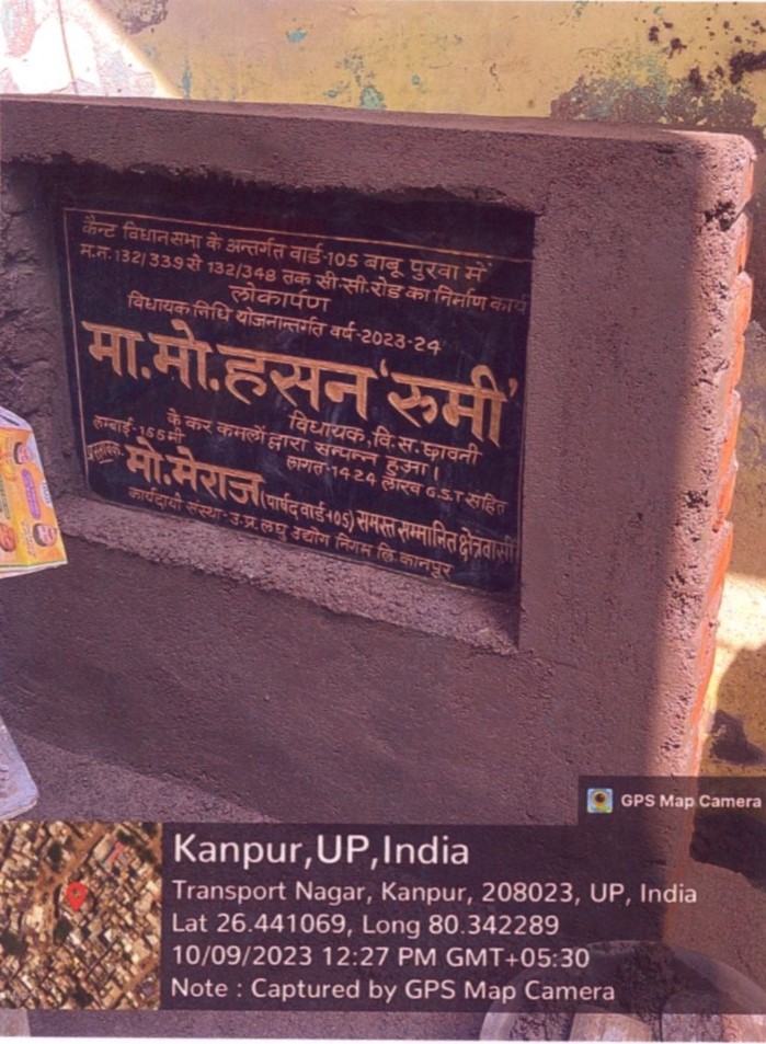 कार्य का नाम – आर्यनगर विधानसभा क्षेत्र के अन्तर्गत वार्ड- 94 पटकापुर में 19/230 से 19/211 तक सी0सी0 रोड का निर्माण कार्य। लम्बाई 30मी0