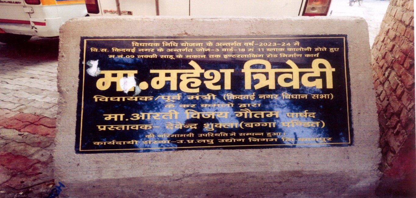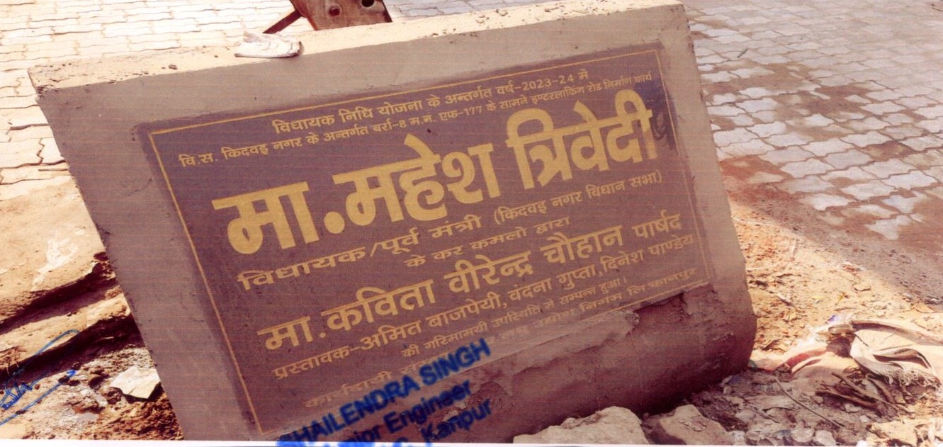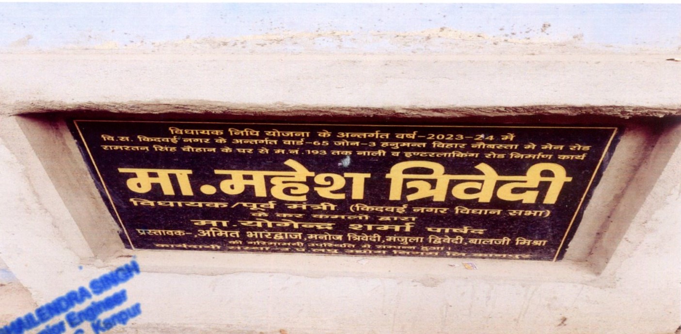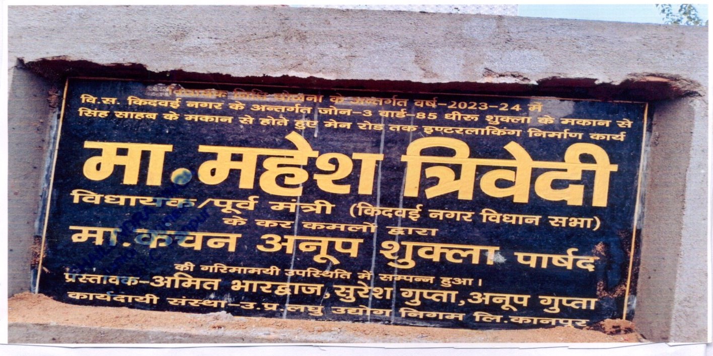 | कार्य का नाम – विधानसभा किदवई नगर के अन्तर्गत वार्ड- 65 जोन-3 हनुमन्त विहार नौबस्ता में मेन रोड रामरतन सिंह चौहान के घर से म0नं0 193 तक नाली एवं इण्टरलाकिंग का निर्माण कार्य। लम्बाई 96मी0
