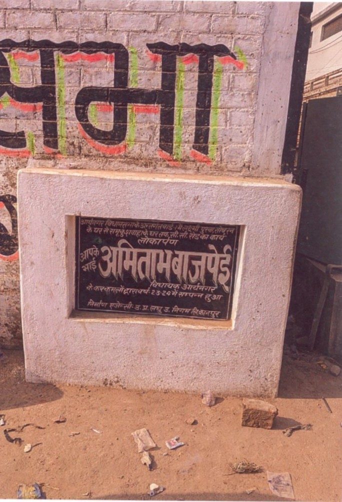 | कार्य का नाम – विधान सभा आर्यनगर के अन्तर्गत वार्ड 1 लक्ष्मीपुरवा में सोबरन के मकान से रामू कुशवाहा के मकान तक सी0सी0 रोड का निर्माण कार्य। लम्बाई 45मी0