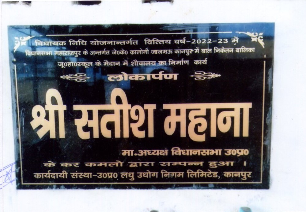 कार्य का नाम-विधानसभा महाराजपुर के अन्तर्गत जे0के0 कालोनी जाजमऊ कानपुर में बाल निकेतन बालिका जू0हा0 स्कूल के मैन में शौचालय का निर्माण कार्य।