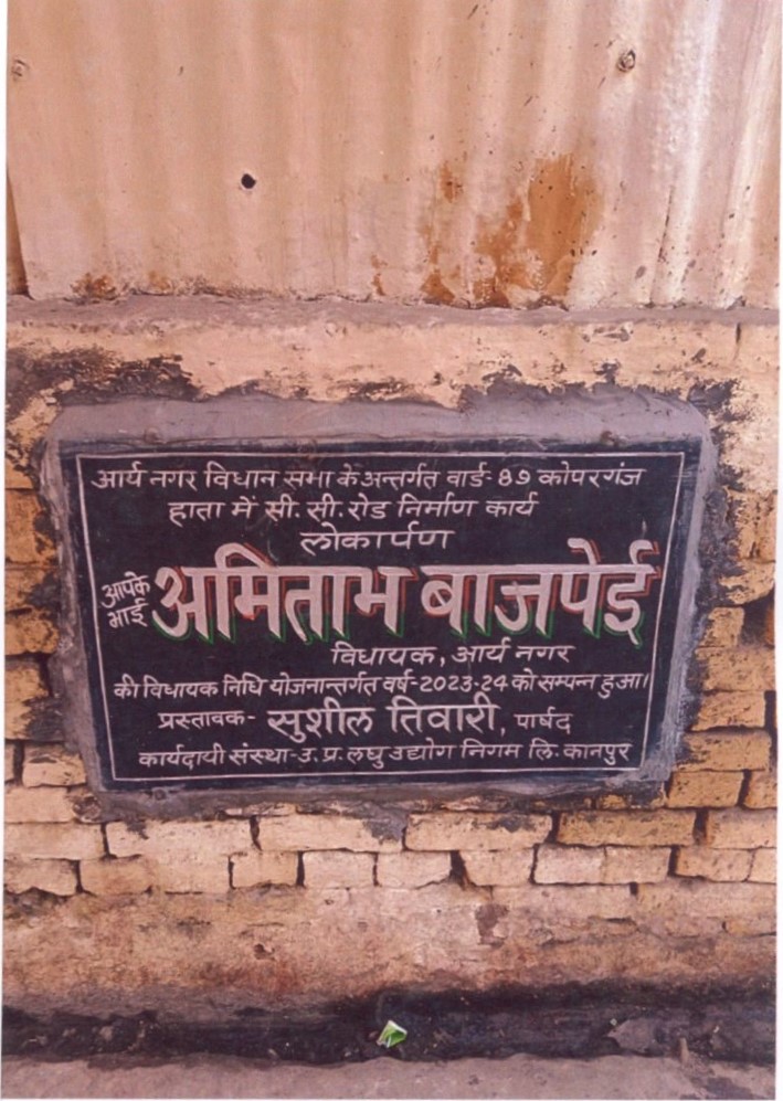 कार्य का नाम – आर्यनगर विधानसभा के अन्तर्गत वार्ड- 89 कोपरगंज हाता में सी0सी0 रोड का निर्माण कार्य। लम्बाई 24मी0