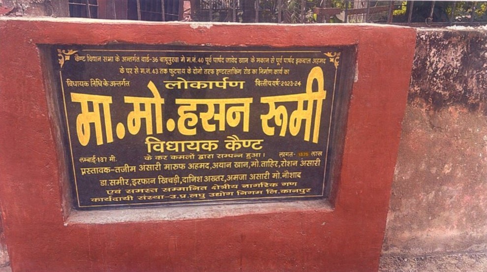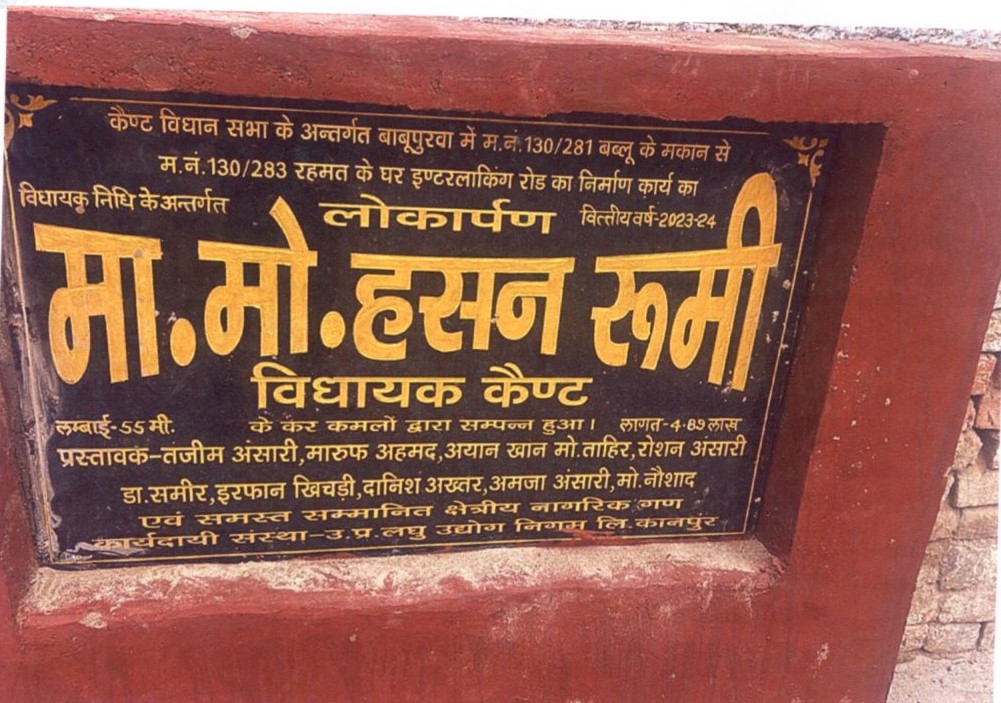 | कार्य का नाम – कैण्ट विधानसभा के अन्तर्गत वार्ड- 36 बाबूपुरवा मे म0नं0 40 पूर्व पार्षद जावेद खान के मकान से पूर्व पार्षद इकबाल अहमद के घर से म0नं0 43 तक फुटपाथ के दोनो तरफ इण्टरलाकिंग रोड का निर्माण कार्य। लम्बाई 137मी0 लम्बाई 137 मी0 ।