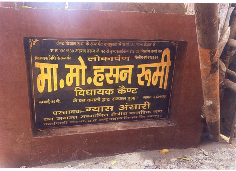 | कार्य का नाम – कैण्ट विधानसभा के अन्तर्गत म0नं0 130/528 नेहाम के म0नं0 130/530 अहमद हसन के घर से इण्टरलाकिंग रोड का निर्माण कार्य। लम्बाई 85मी0 लम्बाई 85 मी0 ।