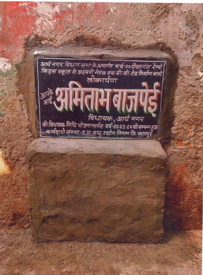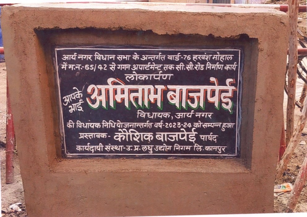 कार्य का नाम – आर्यनगर विधानसभा के अन्तर्गत वार्ड- 76 हरबंश मोहाल में म0नं0 65/42 से गंगा अपार्टमेन्ट तक सी0सी0 रोड का निर्माण कार्य।लम्बाई 60मी0