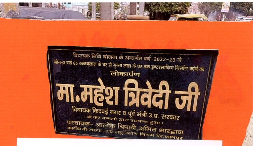 कार्य का नाम – वार्ड- 65 जोन-3 में रज्जन लाल गुप्ता के घर से मुन्ना लाल के घर तक इण्टरलाकिंग रोड एवं नाली का निर्माण कार्य।ल0 111मी0