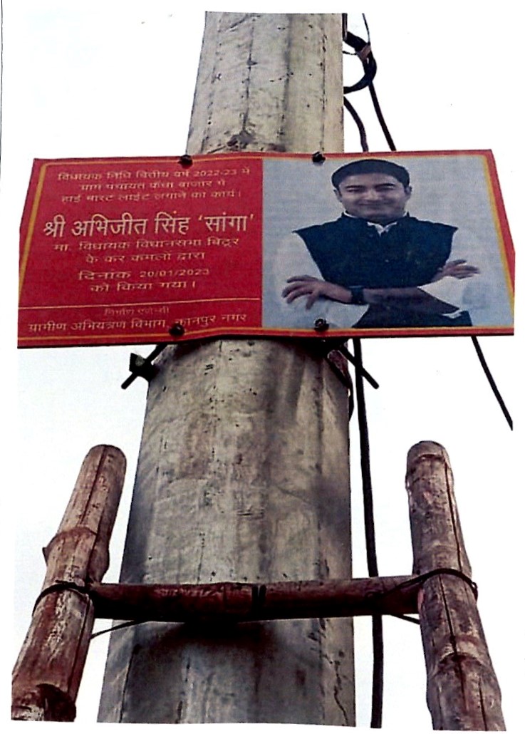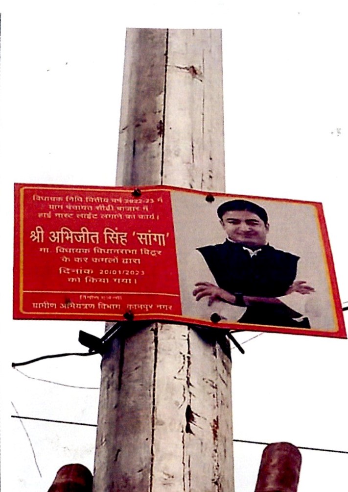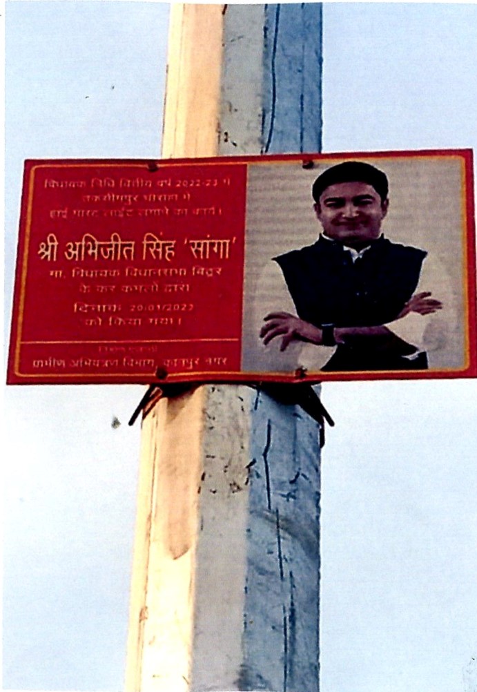 कार्य का नाम – विकास खण्ड कल्यानपुर के अन्तर्गत ग्राम पंचायत कैंधा के कैंधा बाजार में 01 नग लाइट का अदिष्ठापन।