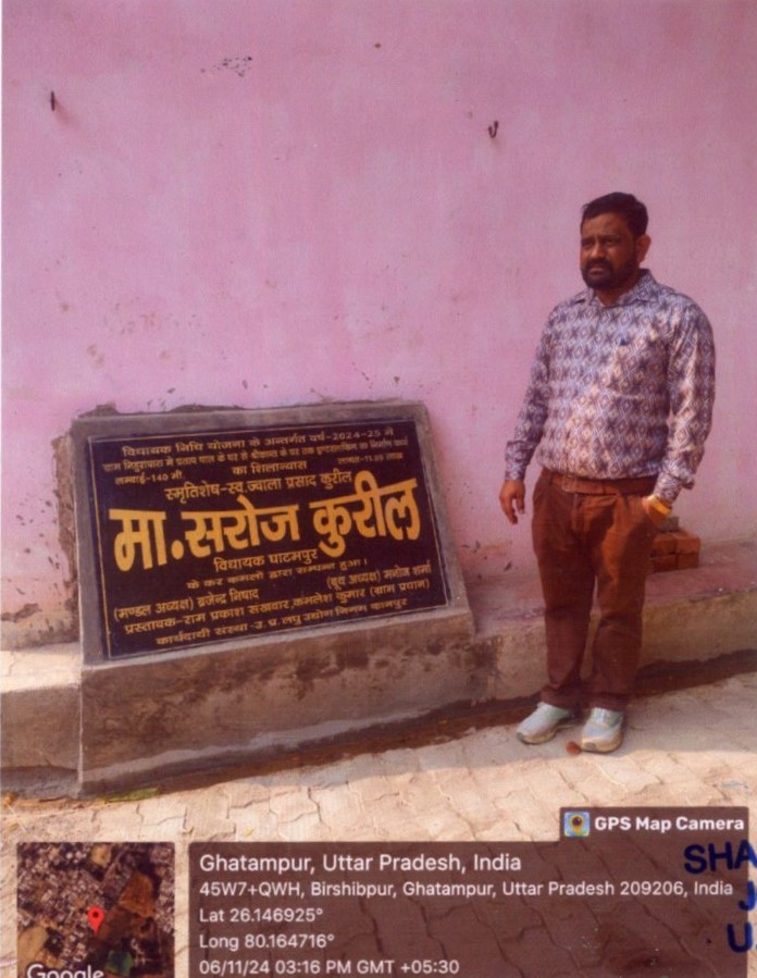 कार्य का नाम – विधानसभा बिठूर के अन्तर्गत ग्राम शंकरपुर सराय गंगारामपुर मे रोहित खरे के घर से शक्ति के घर तक सड़क एवं नाली का निर्माण कार्य। लम्बाई 230मी0