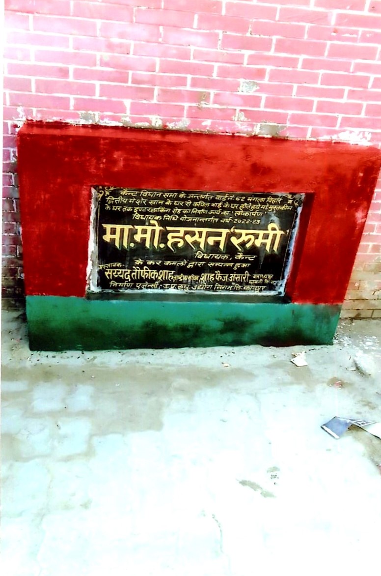 कार्य का नाम – कैन्ट विधानसभा के अन्तर्गत वार्ड- 62 मंगला विहार द्वितीय में शेरखान के घर से कपिल भाई के घर होते हुये मुख्तकीम के घर तक इण्टरलाकिंग रोड का निर्माण कार्य। लम्बाई 130मी0