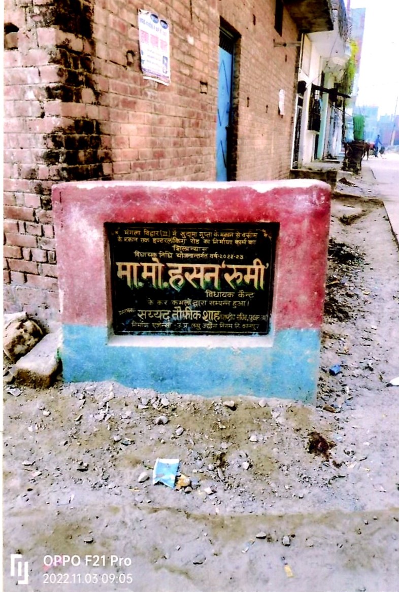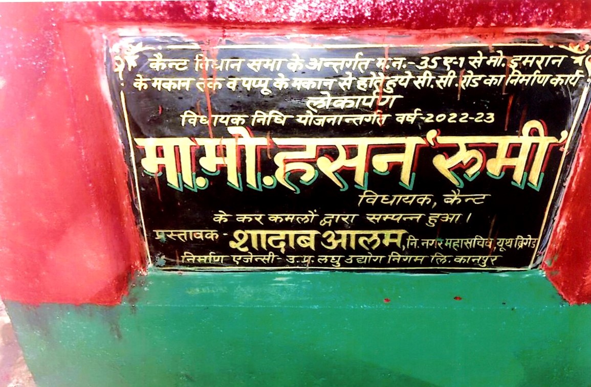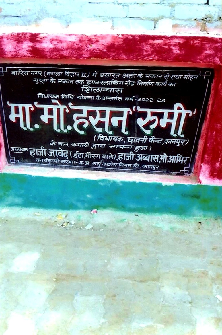 कार्य का नाम – कैन्ट विधानसभा के अन्तर्गत वार्ड- 47 में म0नं0 86 से लेकर म0नं0 80 तक इण्टरलाकिंग रोड का निर्माण कार्य। लम्बाई 75मी0