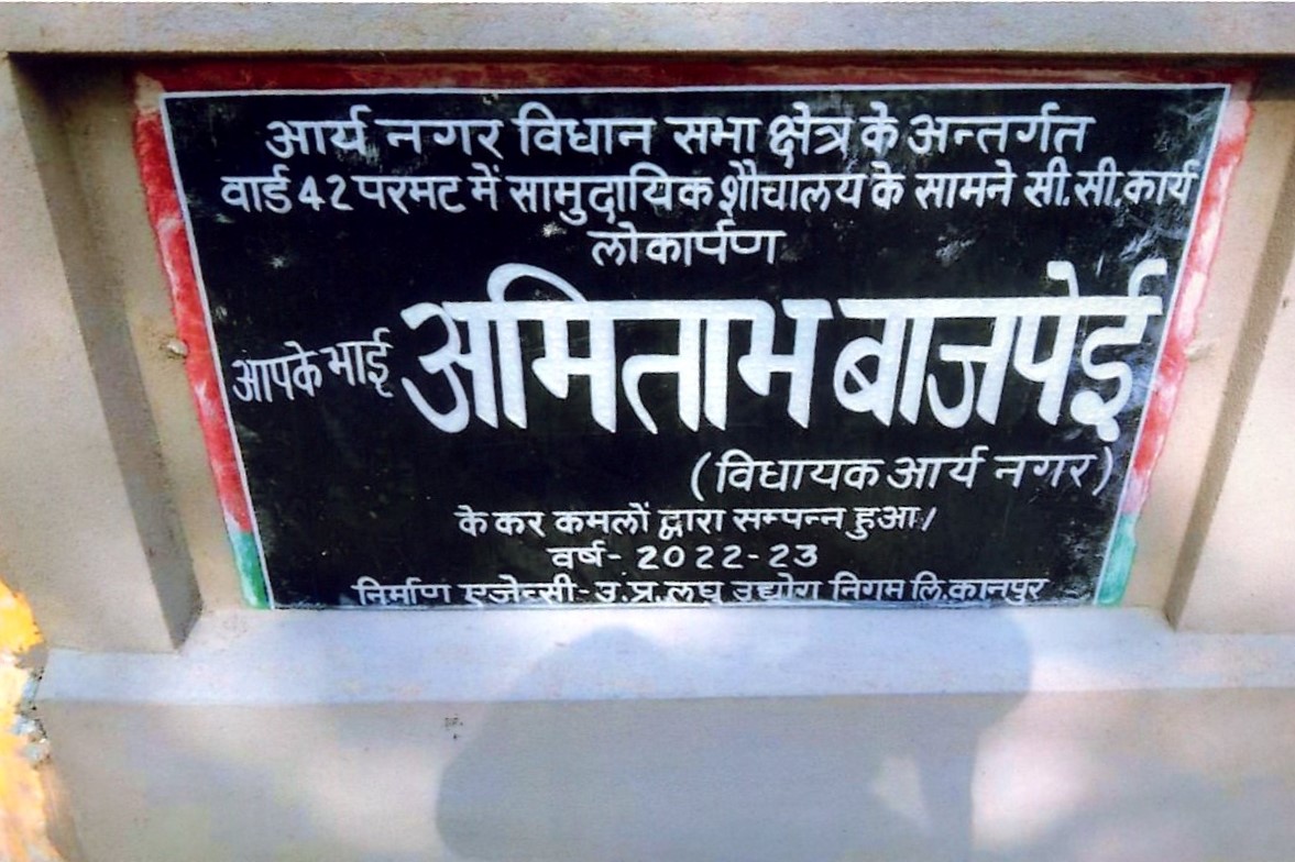 कार्य का नाम – आर्यनगर विधानसभा क अन्तर्गत वार्ड- 42 परमट में सामदायिक शौचालय के सामने सी0सी0 रोड का निर्माण कार्य।लम्बाई 10मी0
