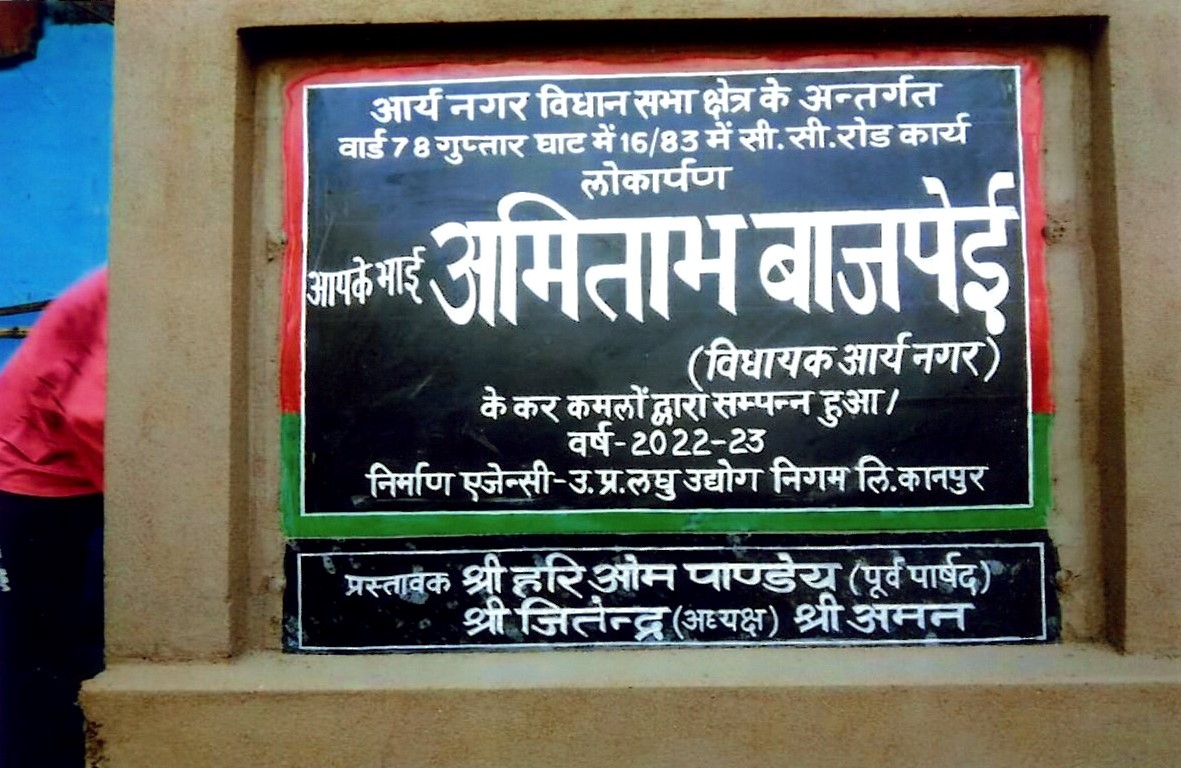 कार्य का नाम – आर्यनगर विधानसभा के अन्तर्गत वार्ड- 78 गुप्ता घाट मे 16/83 में सी0सी0 रोड का निर्माण कार्य।लम्बाई 220मी0
