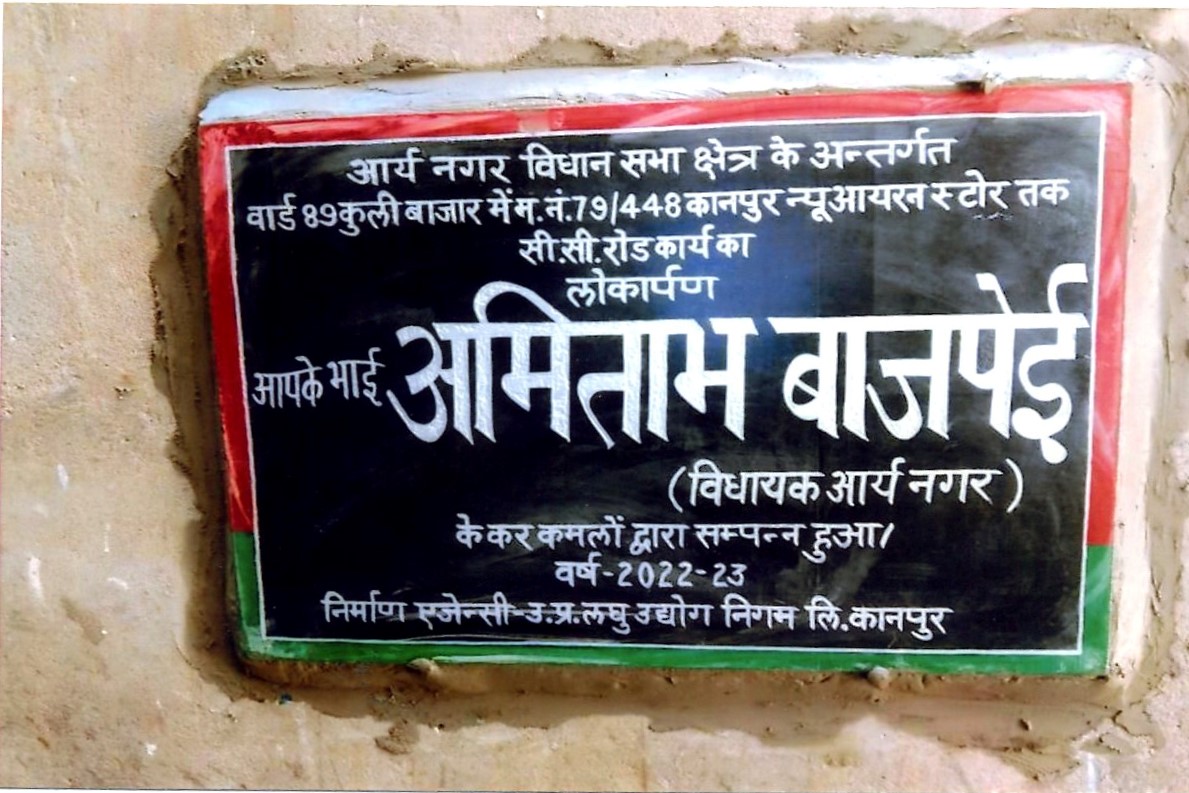 कार्य का नाम – विधानसभा आर्यनगर के अन्तर्गत वार्ड-89 कुलीबाजार में मकान नं0 76/448 कानपुर न्यू आयरन स्टोर तक सी0सी0 रोड का निर्माण कार्य। लम्बाई 80मी