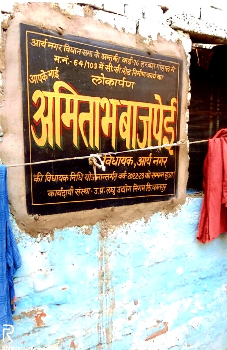 कार्य का नाम – आर्यनगर विधानसभा के अन्तर्गत वार्ड- 76 हरवंश मोहाल में म0नं0 64/109 से राजरानी के घर होते हुये अनिल गुप्ता के घर तक सी0सी0 रोड का निर्माण कार्य। लम्बाई 68.95मी0