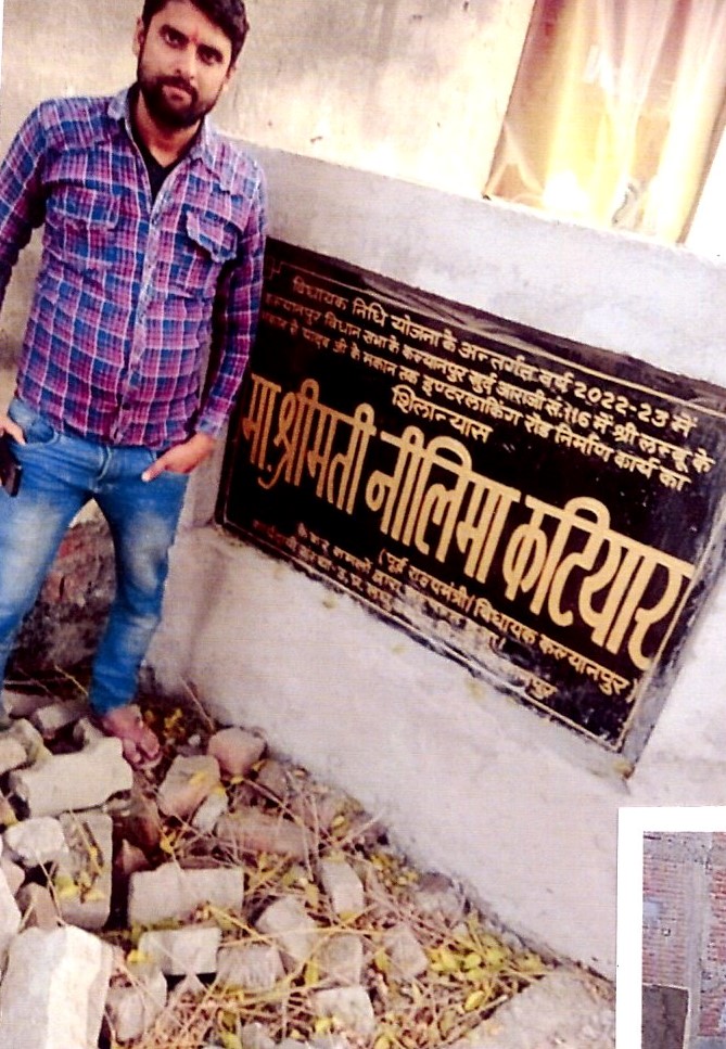 कार्य का नाम – कल्यानपुर विधानसभा के एलिम्को हाउसिंग सोसाइटी विनायकपुर वार्ड-54 में श्री बेनी सिंह के मकान से श्री सत्य प्रकाश राठौर के मकान तक इण्टरलाकिंग व नाली निर्माण कार्य। लम्बाई 61मी0
