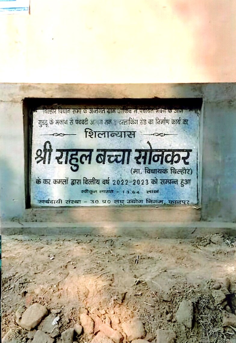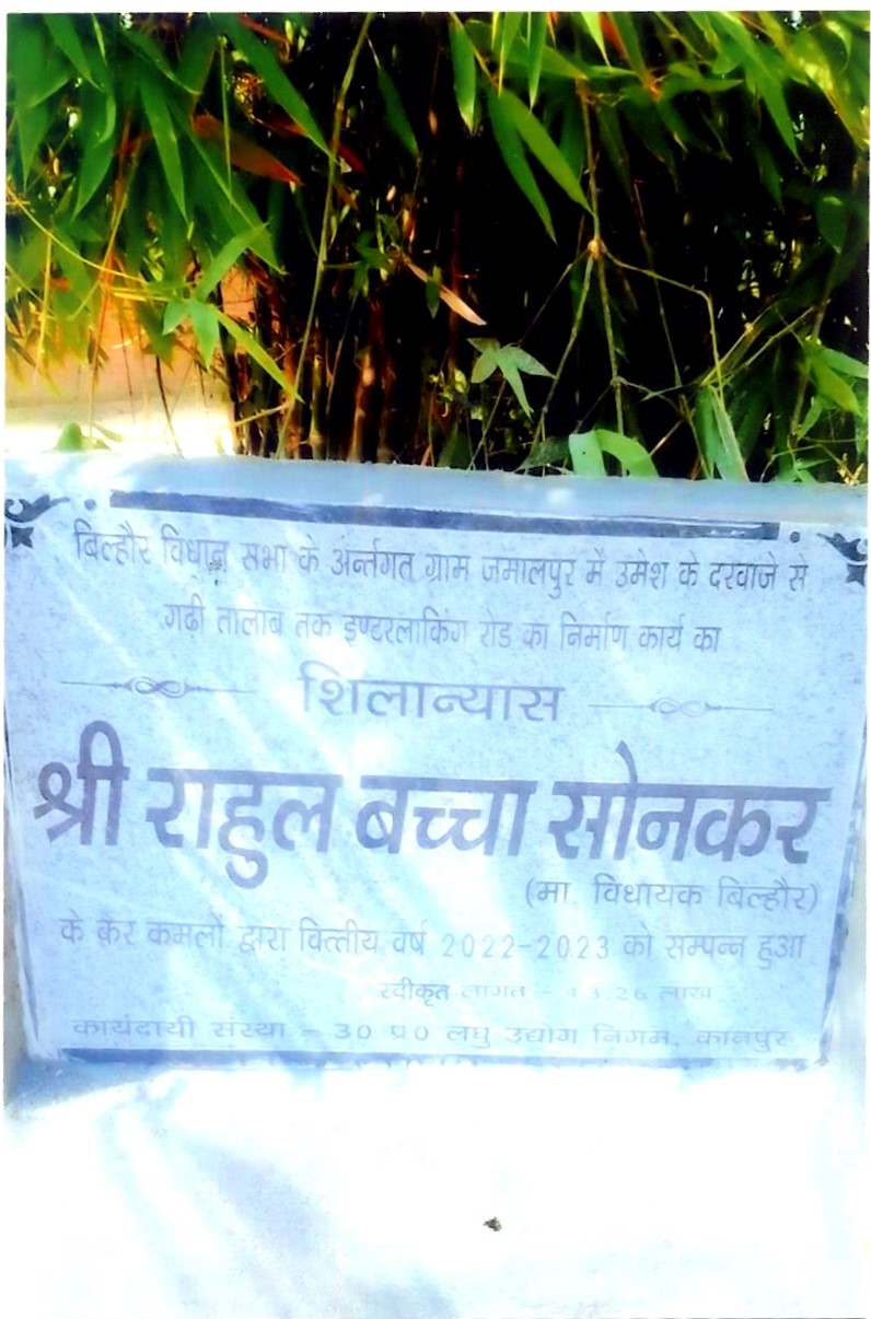 कार्य का नाम – बिल्हौर विधानसभा के अन्तर्गत ग्राम कमालपुर में होली तिराहा से प्रातमिक विद्यालय तक इण्टरलाकिंग रोड का निर्माण कार्य। लम्बाई 375मी0