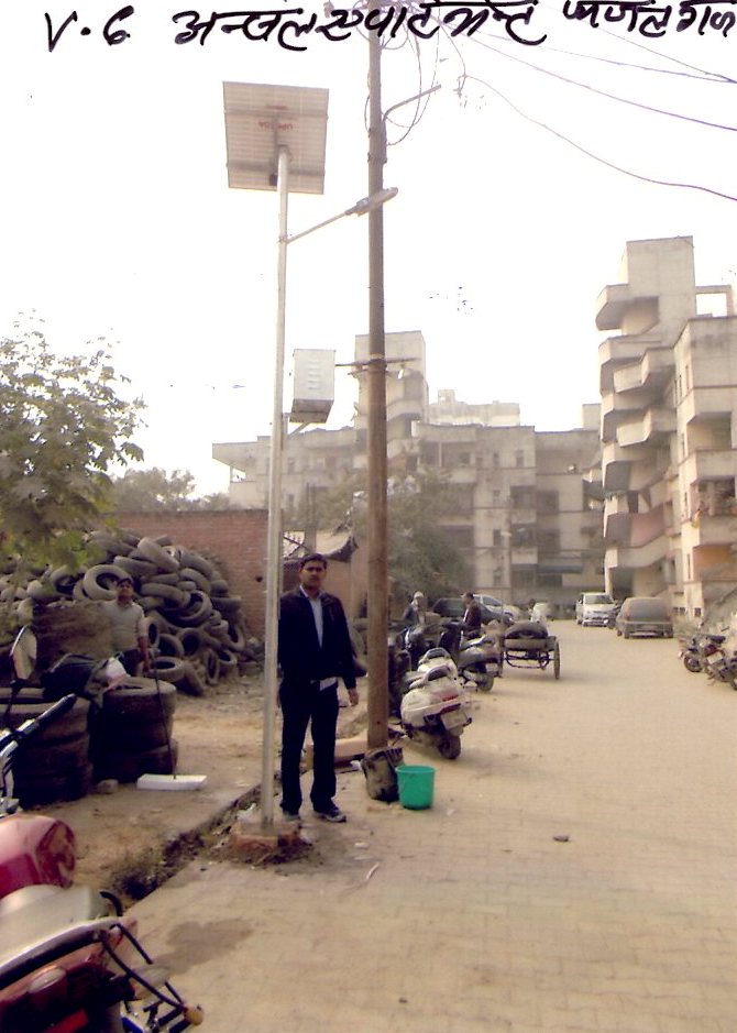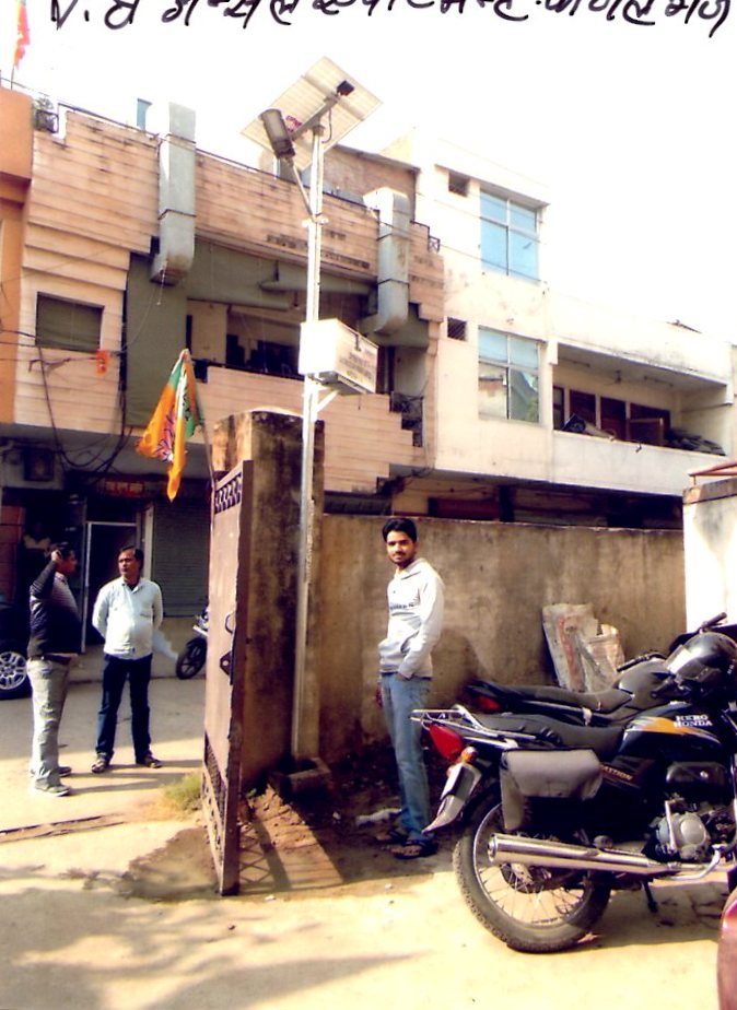 अधिष्ठापित सोलर लाइटों का छायाचित्र